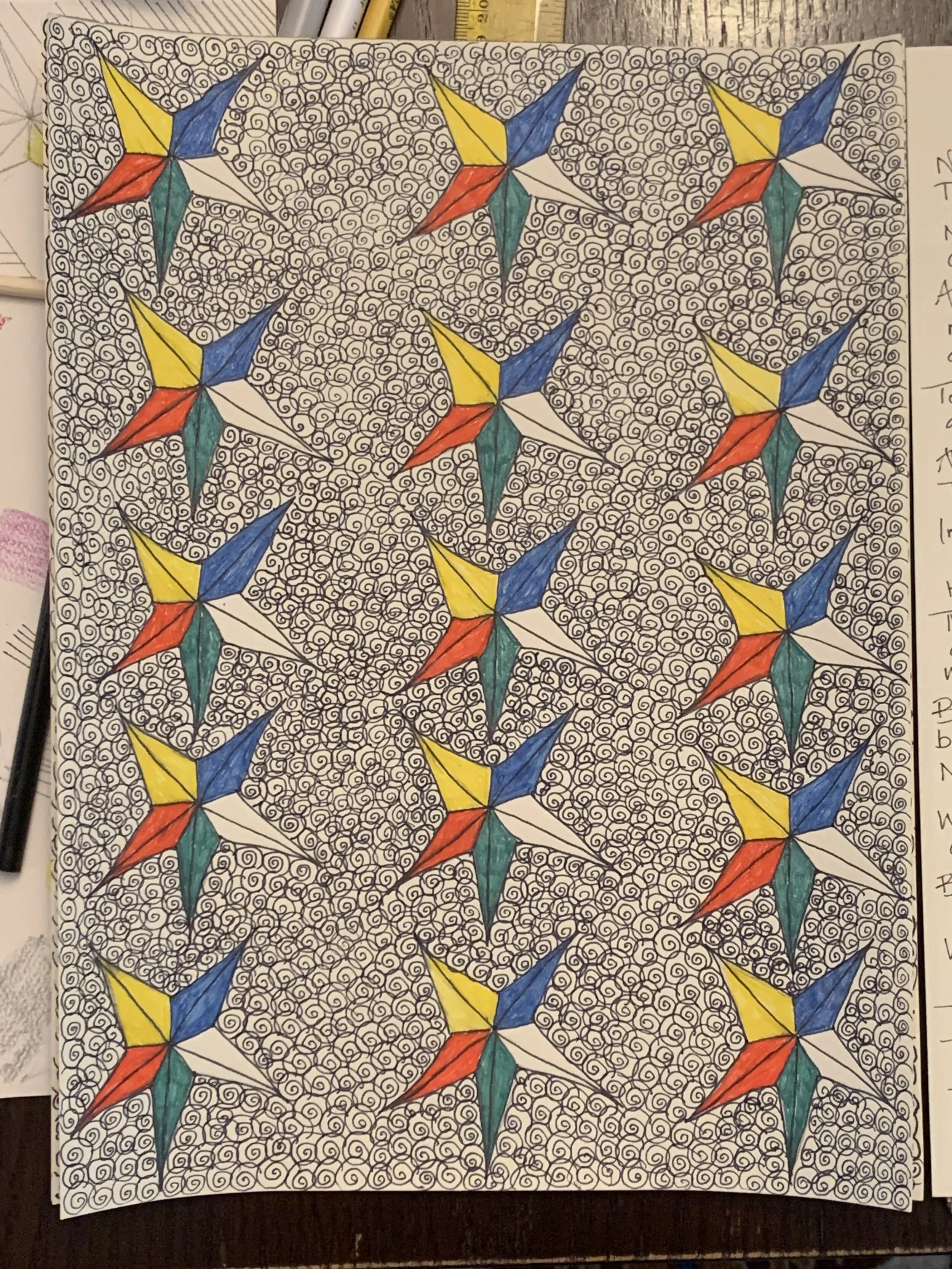 Amulet for Sleiman Ali Kysia, Islamic amulet designed after the death of a loved one who was a member of a little-known sect called the Druze. Paper, ink, beads, thread, 6 H x 4 W x .25 D inches.