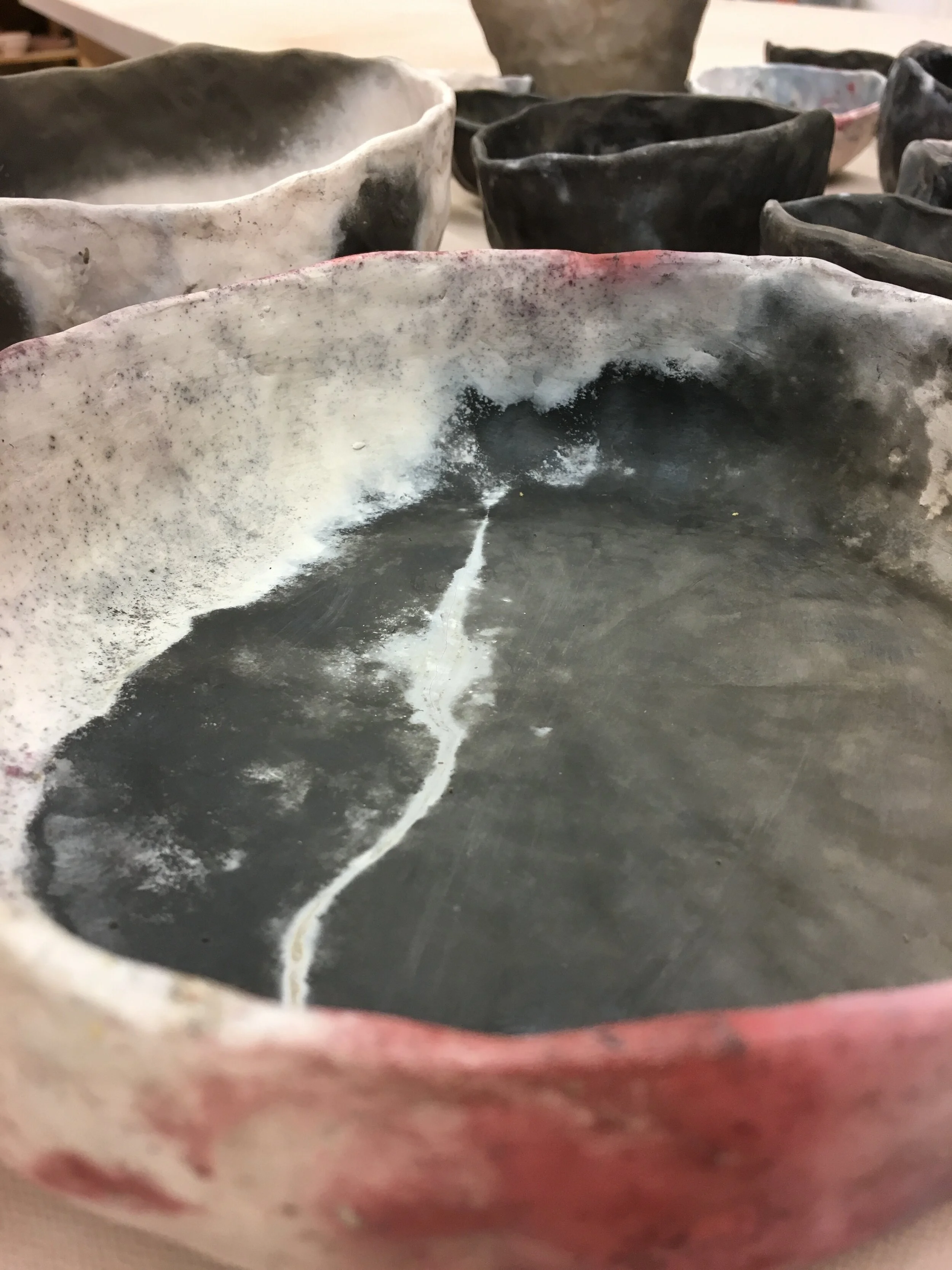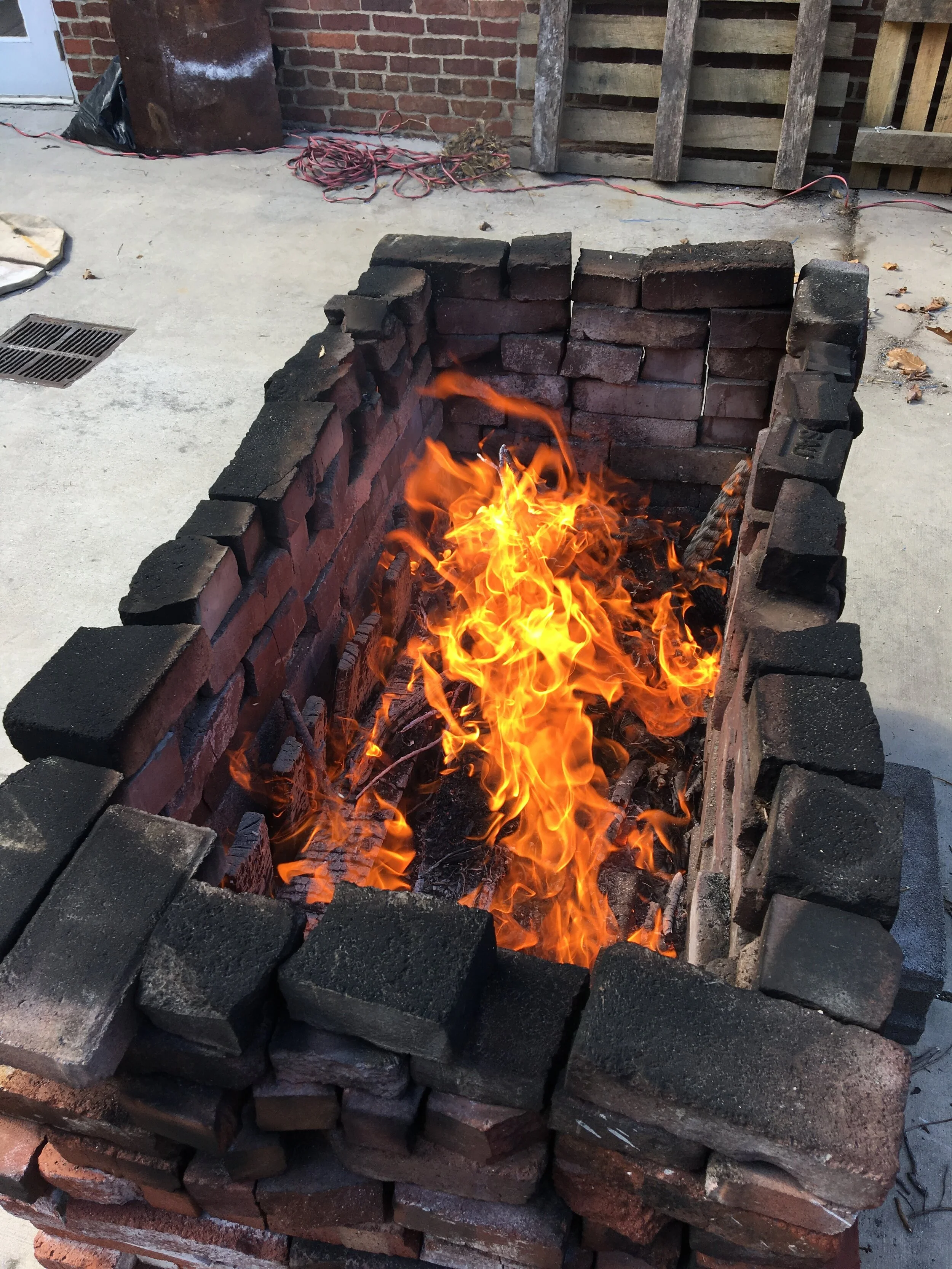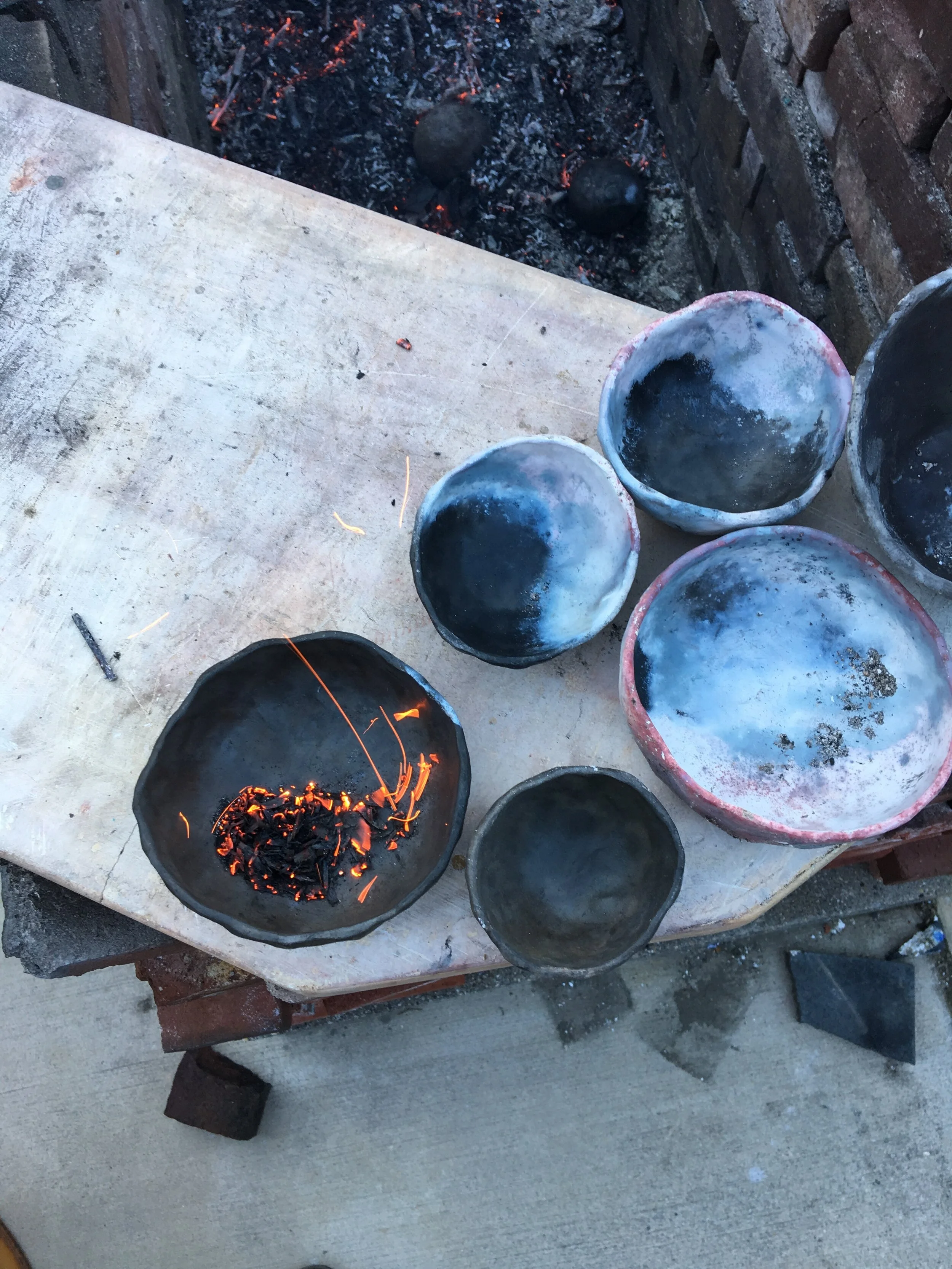 The vessels were made in 2017; Ceramic, pit fired, 72 x 36 x 10 inches
